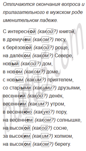 Поставьте вопрос от имени существительного к имени прилагательному в каждом словосочетании. Укажите окончание вопроса и окончание имени прилагательного. В какой падежной форме эти окончания не совпадают?