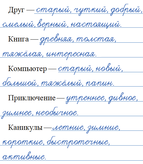Игра «Кто больше?». Подберите как можно больше прилагательных к данным существительным. Можно ли заранее определить, в каком роде, числе и падеже будет стоять каждое прилагательное? В каком случае род имени прилагательного определить нельзя?