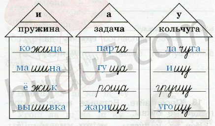 Заполните «домики» словами с данными буквосочетаниями.