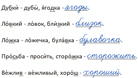 Подберите к каждому слову однокоренное проверочное слово. Запишите по образцу.