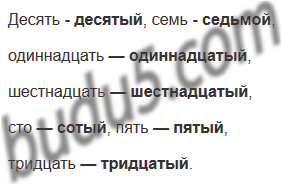 Образец: три — третий, двадцать — двадцатый, ...