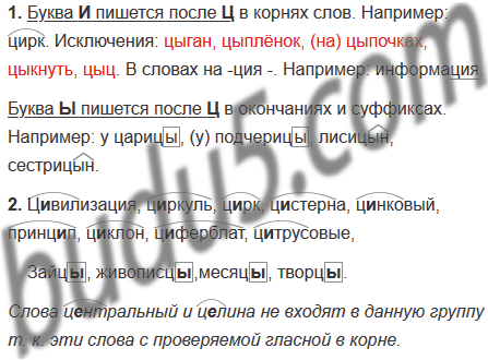 1. В какой части слова после ц пишется и (кроме слов-исключений). а в какой — ы?