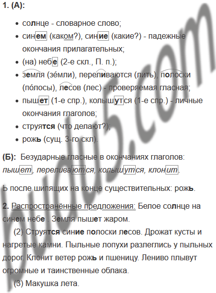 (1) Белое со(?)нце на син..м неб.. . З..мля пыш..т жаром. Дали плывут и переливаются.