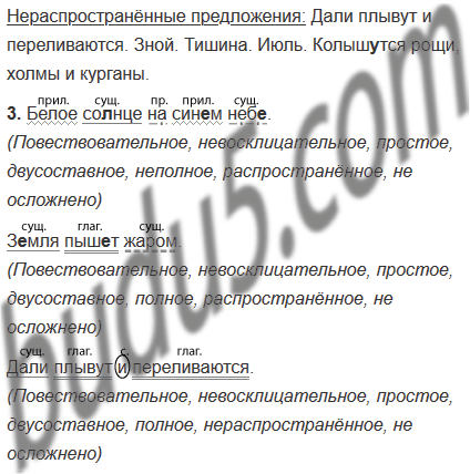 | 2. Приведите примеры распространённых и нераспространённых предложений из текста. | |