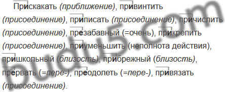 Пр..скакать, пр..винтить, пр..писать, пр..числить, пр..забавный, пр..крепить, пр..уменьшить, пр..школьный2, пр..брежный, пр..рвать, пр..одолеть, пр..вязать.