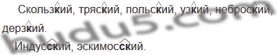 Скольз..ий, индус..ий, тряс..ий, польс..ий, уз..ий, неброс..ий, эскимос..ий, дерз..ий.
