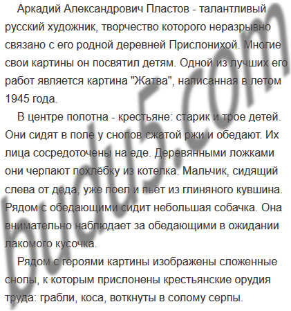 Напишите сочинение-описание картины А. Пластова «Жатва». Используйте материалы параграфа, собственные материалы, а также информацию о художнике и его картине в Интернете (www.art.ru).