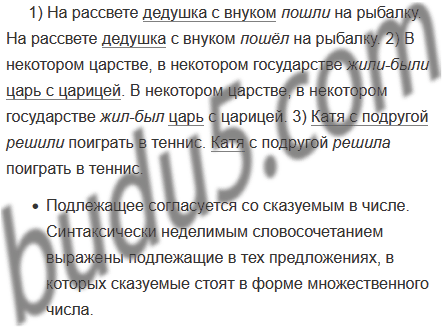 1) На рассвете дедушка с внуком пошли на рыбалку. На рассвете дедушка с внуком пошёл на рыбалку. 2) В некотором царстве, в некотором государстве жили-были царь с царицей. В некотором царстве, в некотором государстве жил-был царь с царицей. 3) Катя с подругой решили поиграть в теннис. Катя с подругой решила поиграть в теннис.