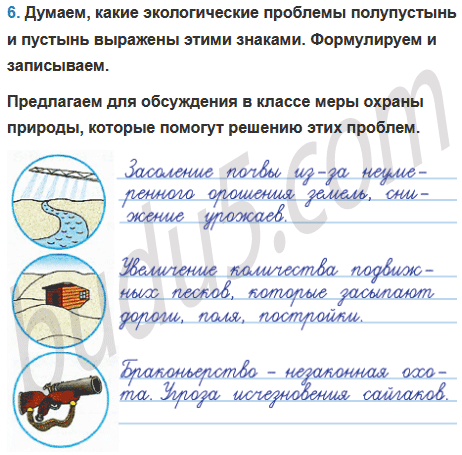 6. Подумайте, какие экологические проблемы полупустынь и пустынь выражены этими знаками. Сформулируйте и запишите.