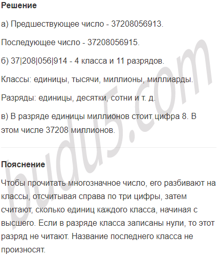 а) Прочитай число: 37208056914. Назови предшествующее и последующее числа.