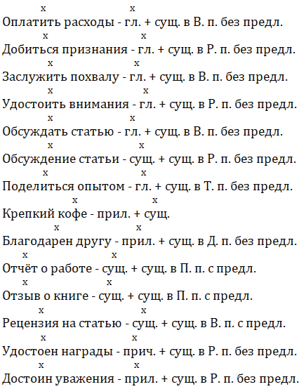 I. Оплатить (расходы), добиться (пр..знание), заслужить (похвала), удостоиться (внимание), обсуждать (статья), обсуждение (статья), поделиться (опыт), крепк.. (кофе), благодарен (друг), отчет (работа), отзыв (книга), рецензия (статья), удосто..н (награда), досто..н (уважение).