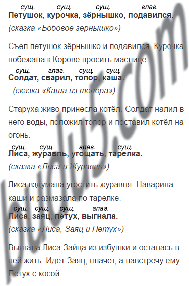 | петушок курочка зёрнышко подавился | солдат сварил топор каша | лиса журавль угощать тарелка | лиса заяц петух выгнала |